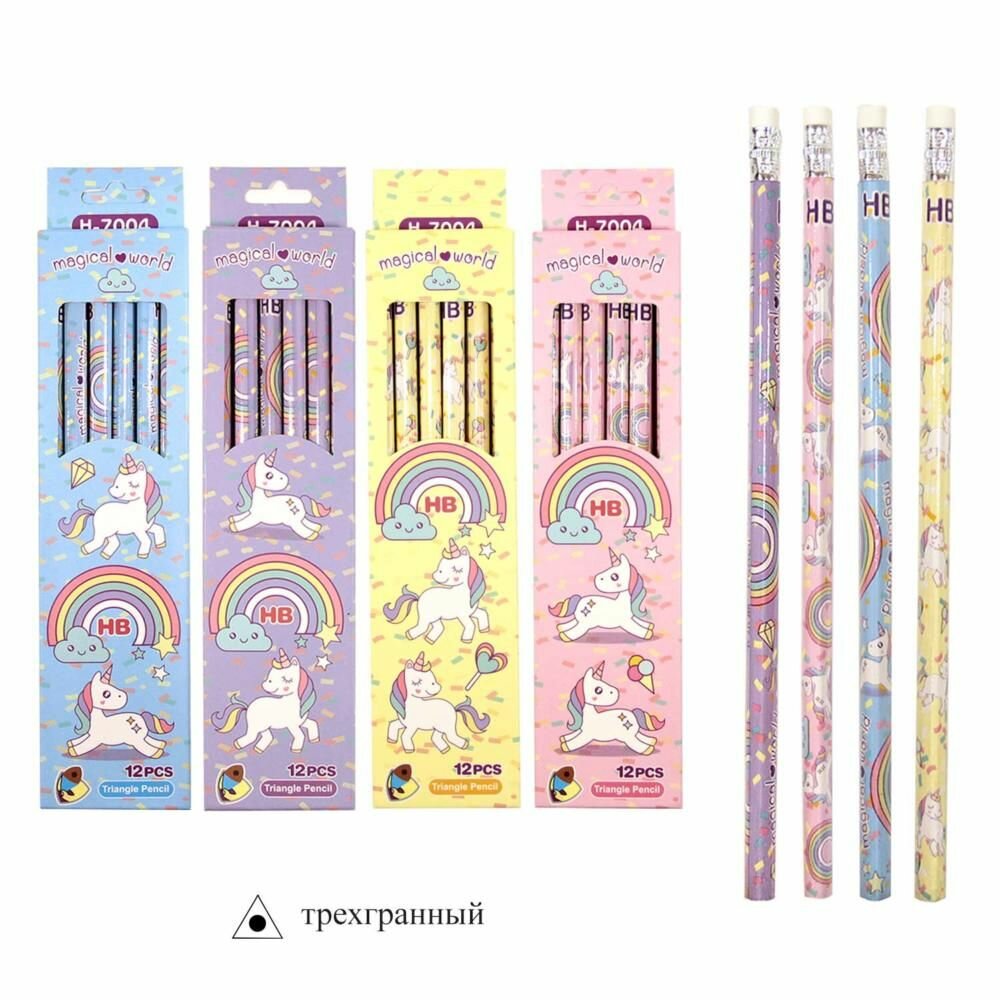 10 цен на Карандаши для школы простые HB с ластиком, Набор чернографитных карандашей для офиса и рисования из 12 штук, Единорог, Н21561-16