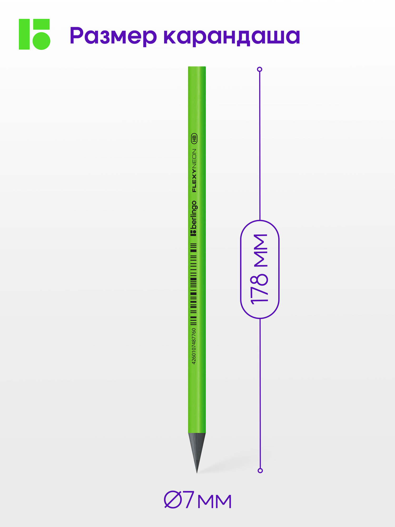 Карандаш чернографитный Berlingo "Flexy Neon" HB, заточенный, пластиковый, упаковка 12 шт. информация: