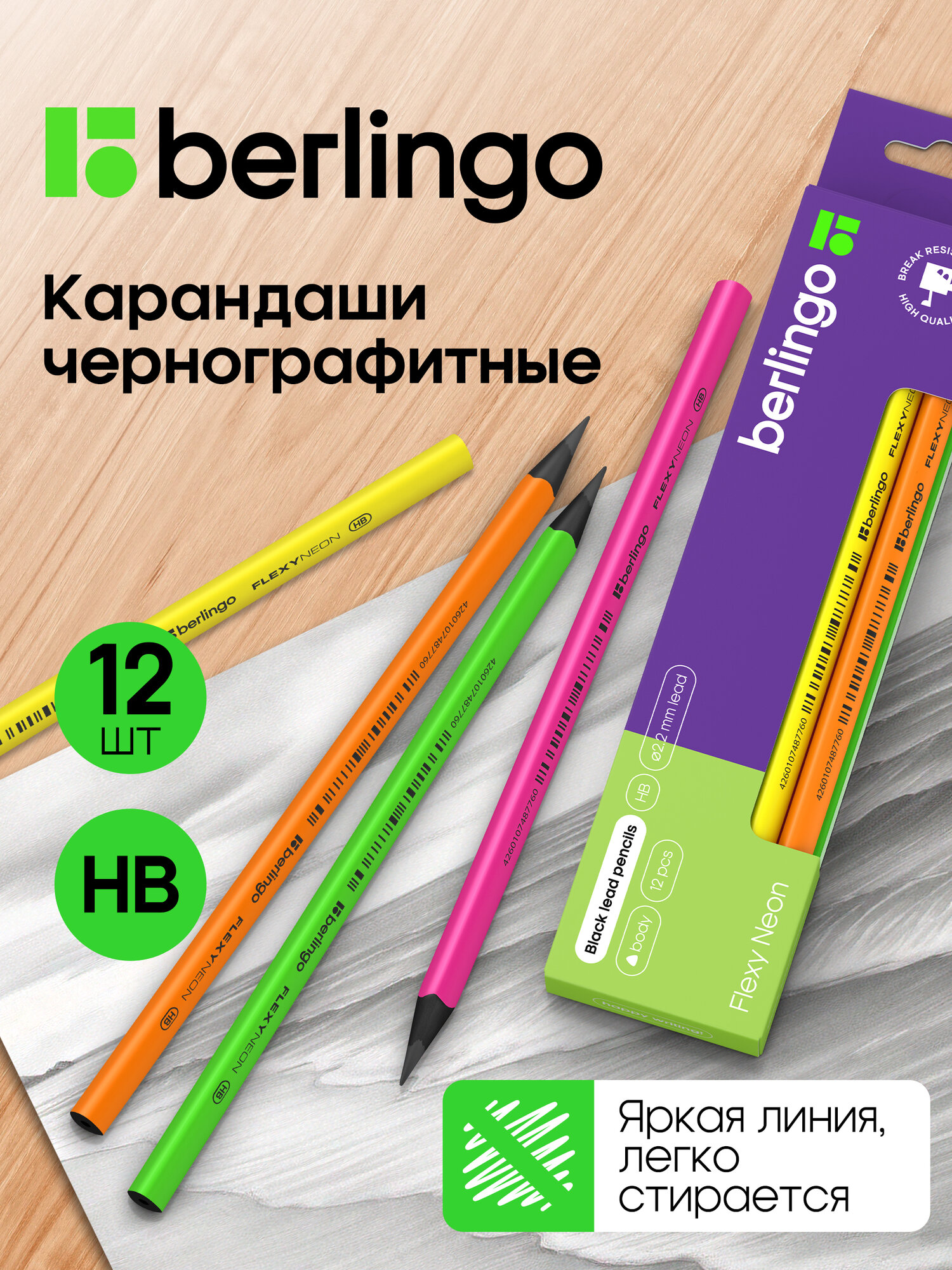 Отзывы на Карандаш чернографитный Berlingo "Flexy Neon" HB, заточенный, пластиковый, упаковка 12 шт.