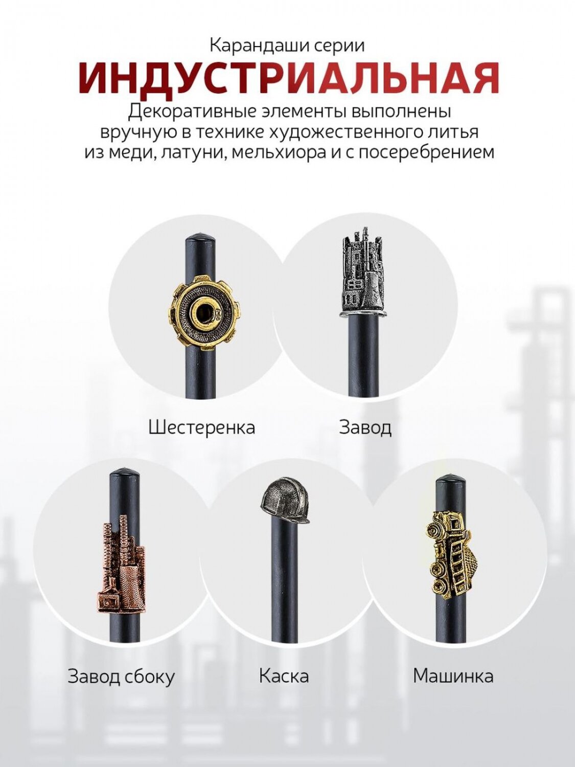 Карандаш чернографитный "Индустриальный Шестеренка" посеребренный с чернением информация: