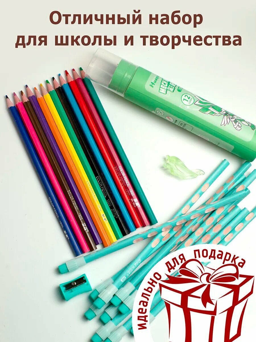 Карандаши цветные и простые с ластиками и точилкой информация: