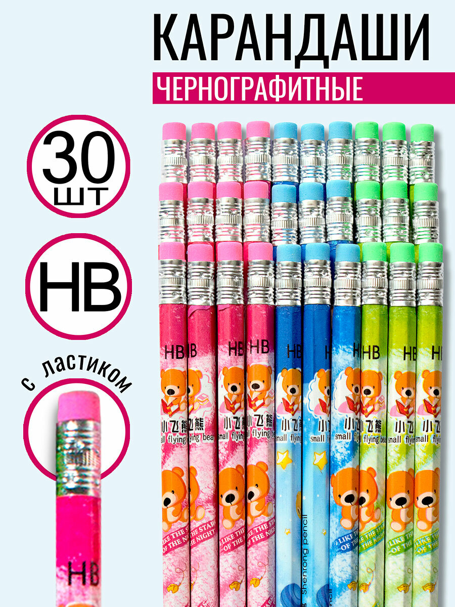 Карандаши простые для школы с ластиками набор 30 шт информация:
