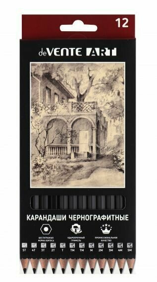 Карандаши чернографитные deVente "Art", набор 12 штук 2мм, шестигранные заточенные, к/у информация:
