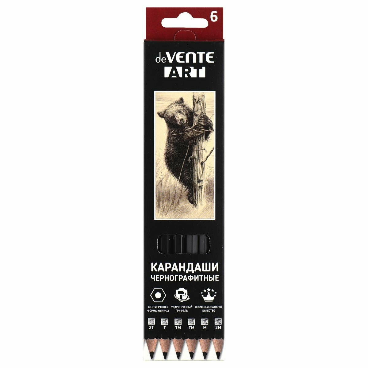 10 цен на Карандаши чернографитные deVente "Art", набор 6 штук 2мм, корпус с черным топом шестигранные заточенные, к/у