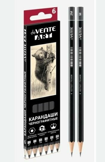Отзывы на Карандаши чернографитные deVente "Art", набор 6 штук 2мм, корпус с черным топом шестигранные заточенные, к/у