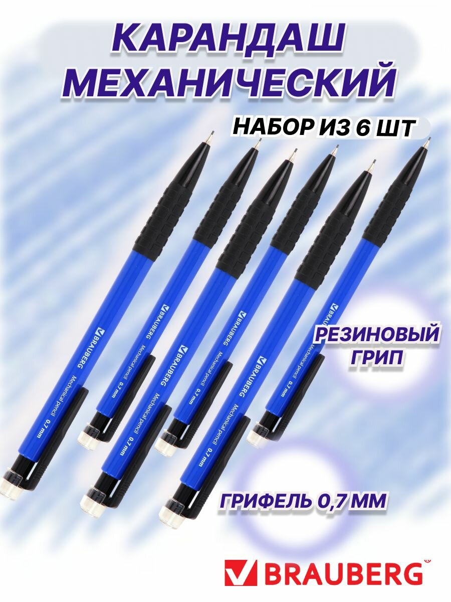 Карандаш простой BRAUBERG, механический, пластиковый корпус, грифель HB 0,7 мм, 6 штук информация: