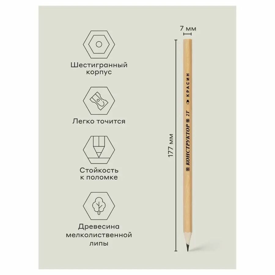 10 цен на Карандаш ч/г Красин "Конструктор" 2Т (2H) шестигран, заточен.