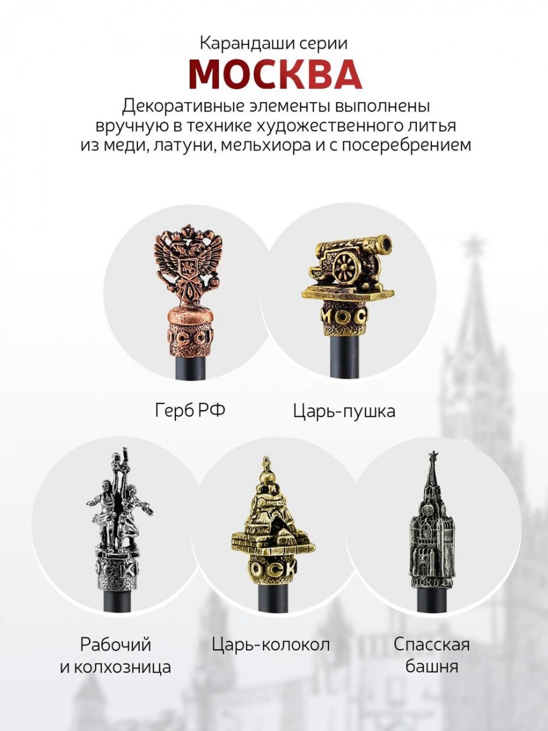 Карандаш чернографитный "Царь-пушка" латунный посеребренный с чернением информация: