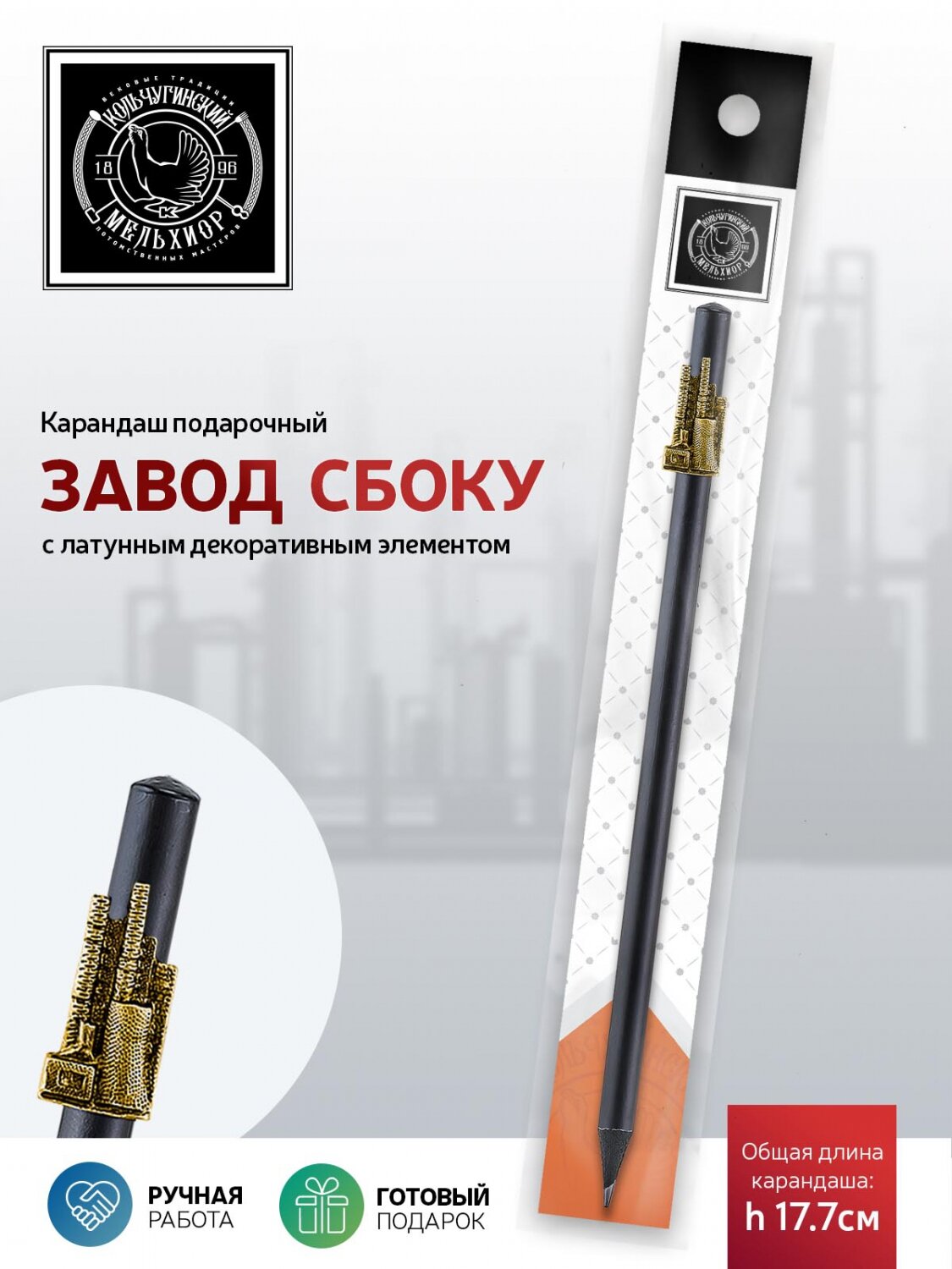 Карандаш чернографитный "Индустриальный Завод сбоку" латунный с чернением информация: