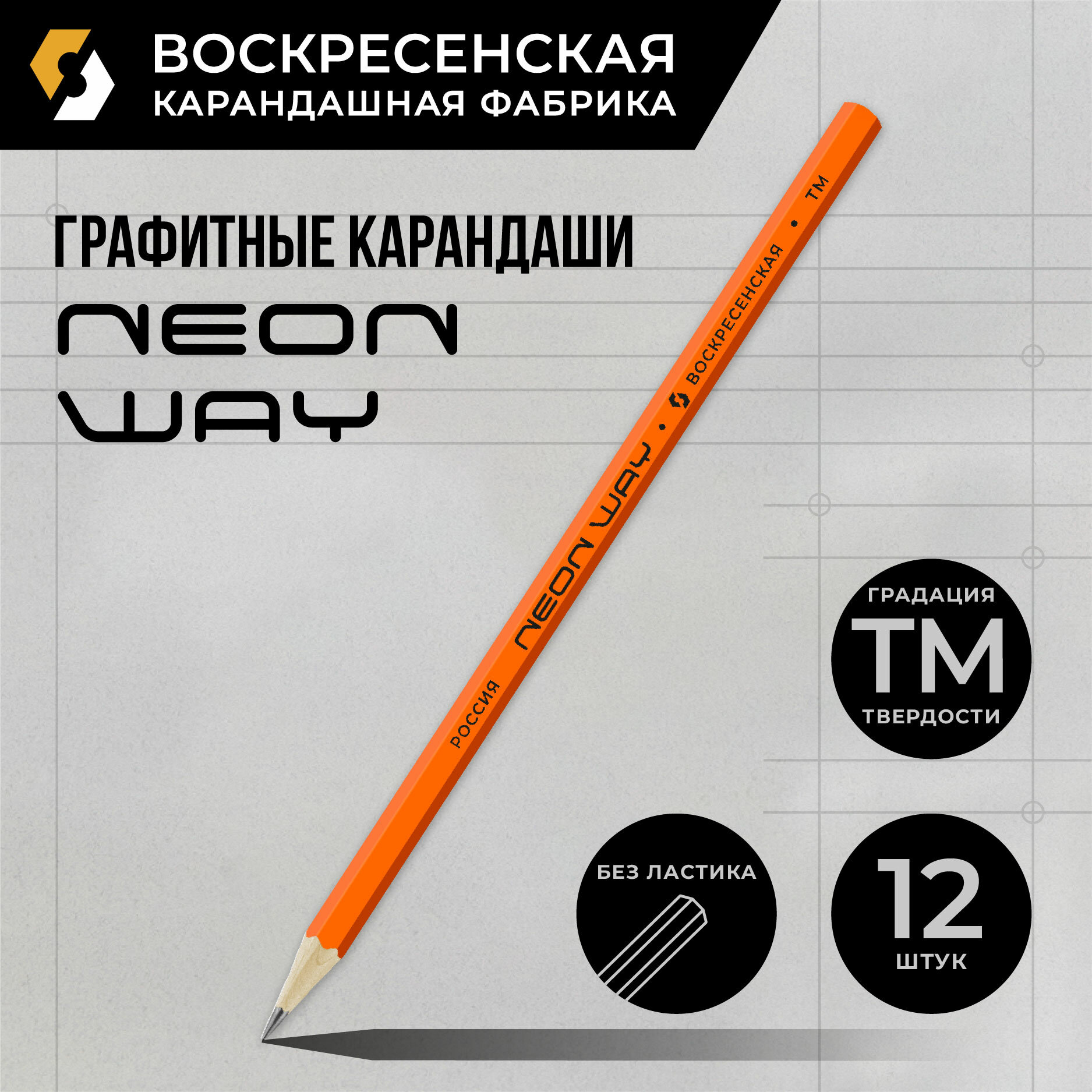 10 цен на Карандаш 12 шт. графитный (простой) ВКФ "Neon way" неоновый заточенный ТМ (HB) оранжевый