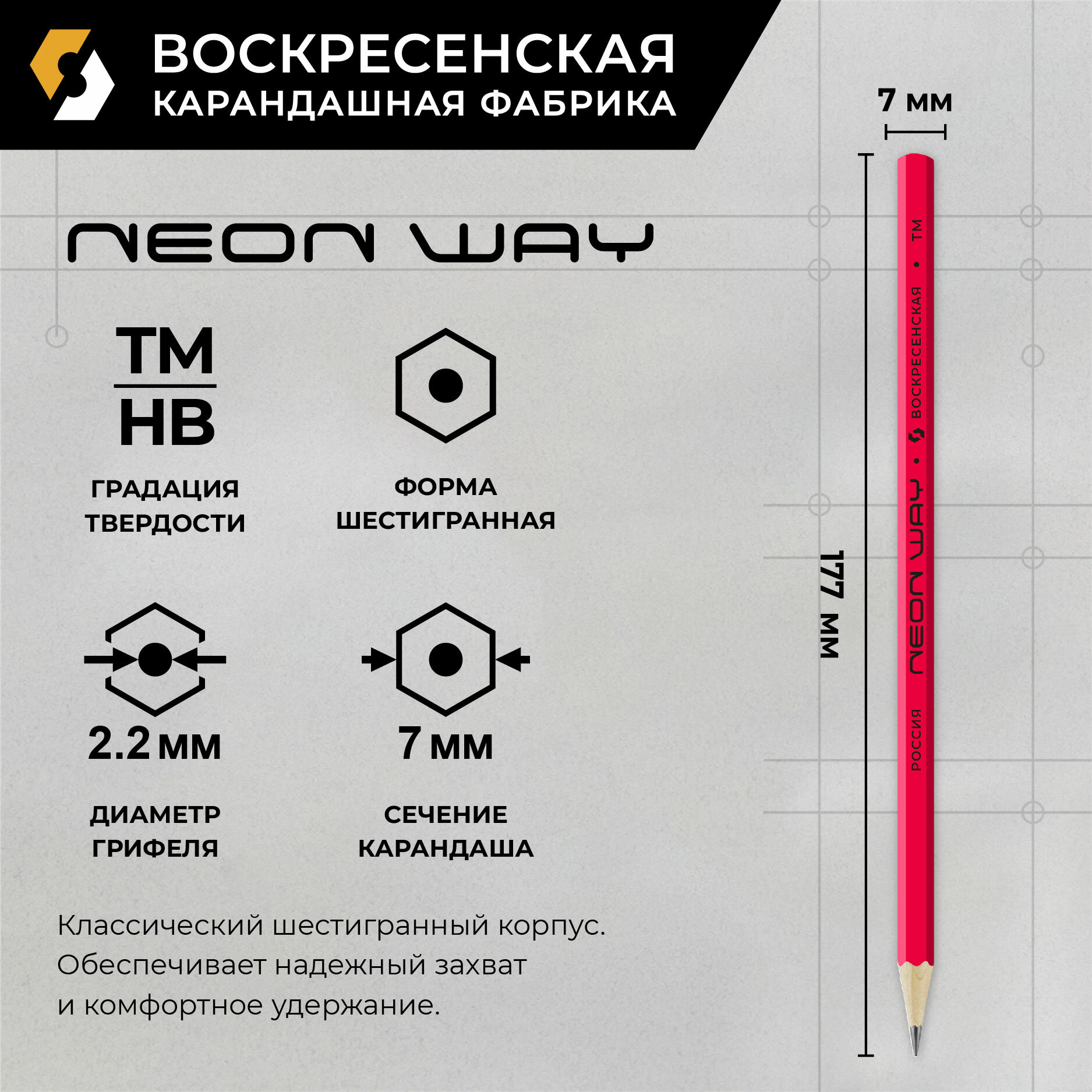 Карандаш 12 шт. графитный (простой) ВКФ "Neon way" неоновый заточенный ТМ (HB) розово-оранжевый информация: