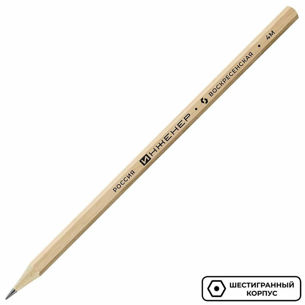 10 цен на Карандаш чернографитный ВКФ "Инженер" (4M(4B), заточенный, без ластика) (1233), 72шт.