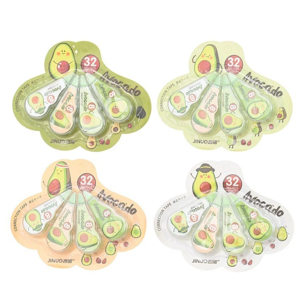 Ленточные корректоры JINUO "Авокадо" 4 шт по 5 метров, набор сухих корректирующих лент, замазка в разноцветном корпусе информация: