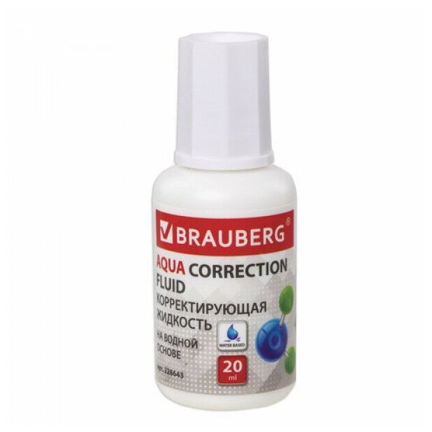 Корректирующая жидкость BRAUBERG "Aqua" на водной основе 20 мл, с кисточкой, 22хххх, 228643 информация: