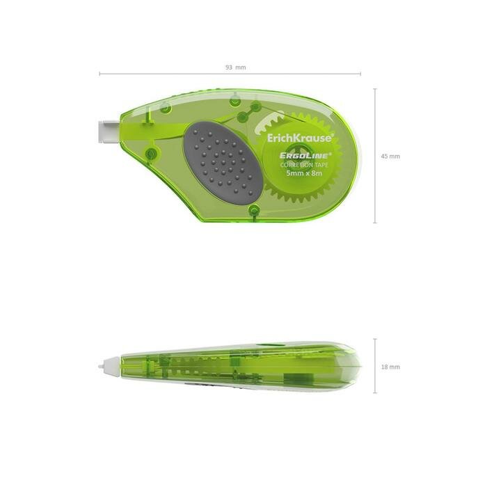 Корректирующая лента 5 мм х 8 м, ErichKrause ErgoLine, с резиновой вставкой, корпус салатовый, блистер информация: