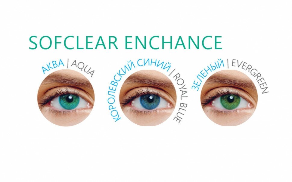 Цветные контактные линзы Gelflex Sofclear ENHANCE with Bio Moist, AQUA, 2 шт, 1 мес, R 8.6, D -10,00