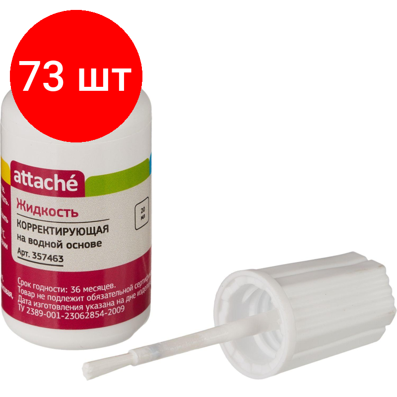 Комплект 73 штук, Корректирующая жидкость Attache 20мл на водной основе, кисточка информация: