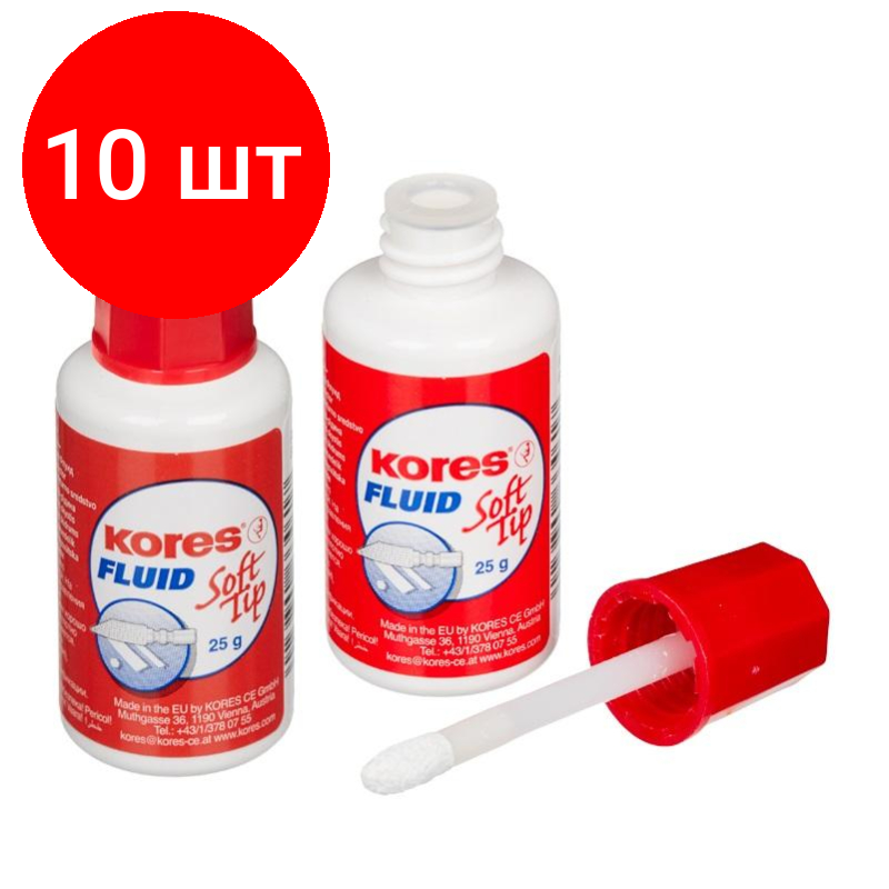 10 цен на Комплект 10 штук, Корректирующая жидкость KORES Soft Tip FLUID 25мл на быстросохн осн, апплик