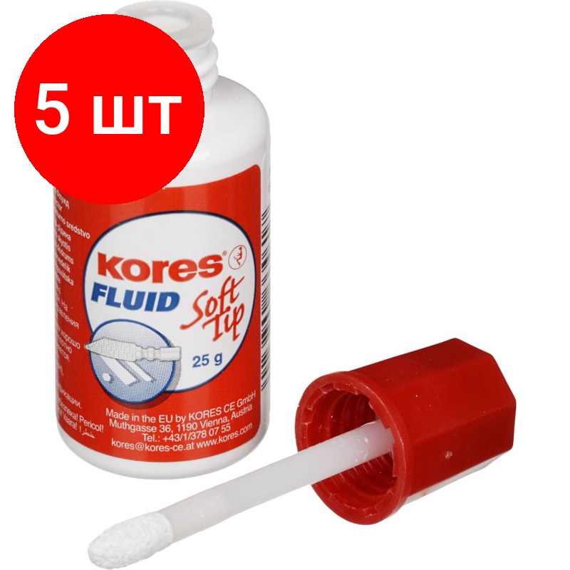 10 цен на Комплект 5 штук, Корректирующая жидкость KORES Soft Tip FLUID 25мл на быстросохн осн, апплик