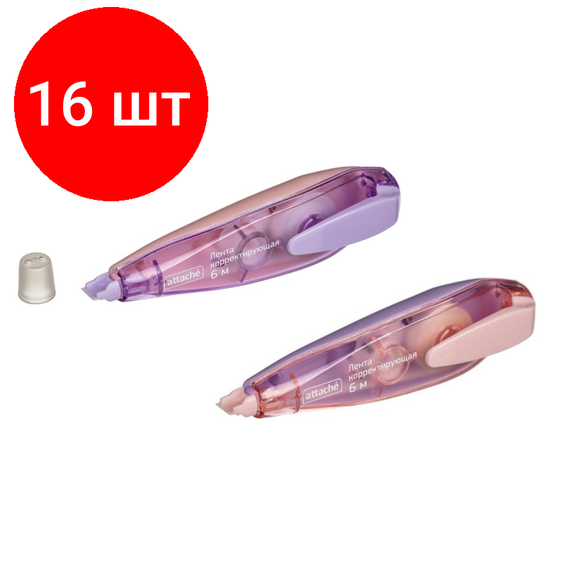 Комплект 16 штук, Корректирующая лента Attache 5mmx6m форма ручки, с зажимом белый/ассортиTW информация: