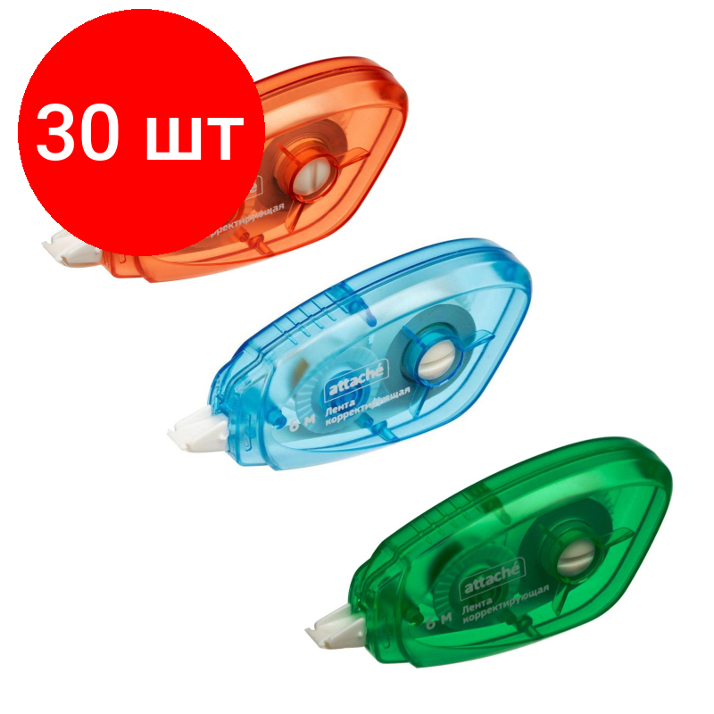 10 цен на Комплект 30 штук, Корректирующая лента Attache 5ммx6м с подкручивающимся механизмом, цвет асс