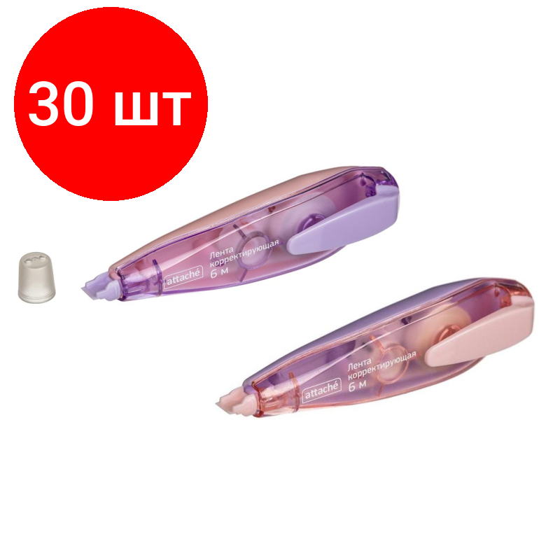 Комплект 30 штук, Корректирующая лента Attache 5mmx6m форма ручки, с зажимом белый/ассортиTW информация: