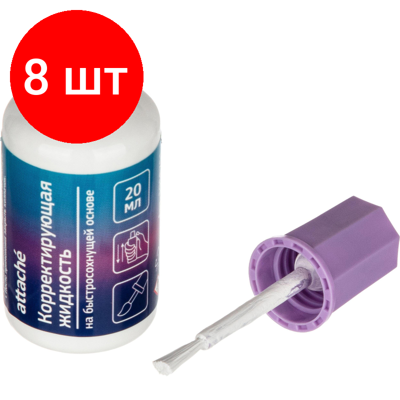Комплект 8 штук, Корректирующая жидкость 20мл Attache Градиент, быстросохнущая с кисточкой информация: