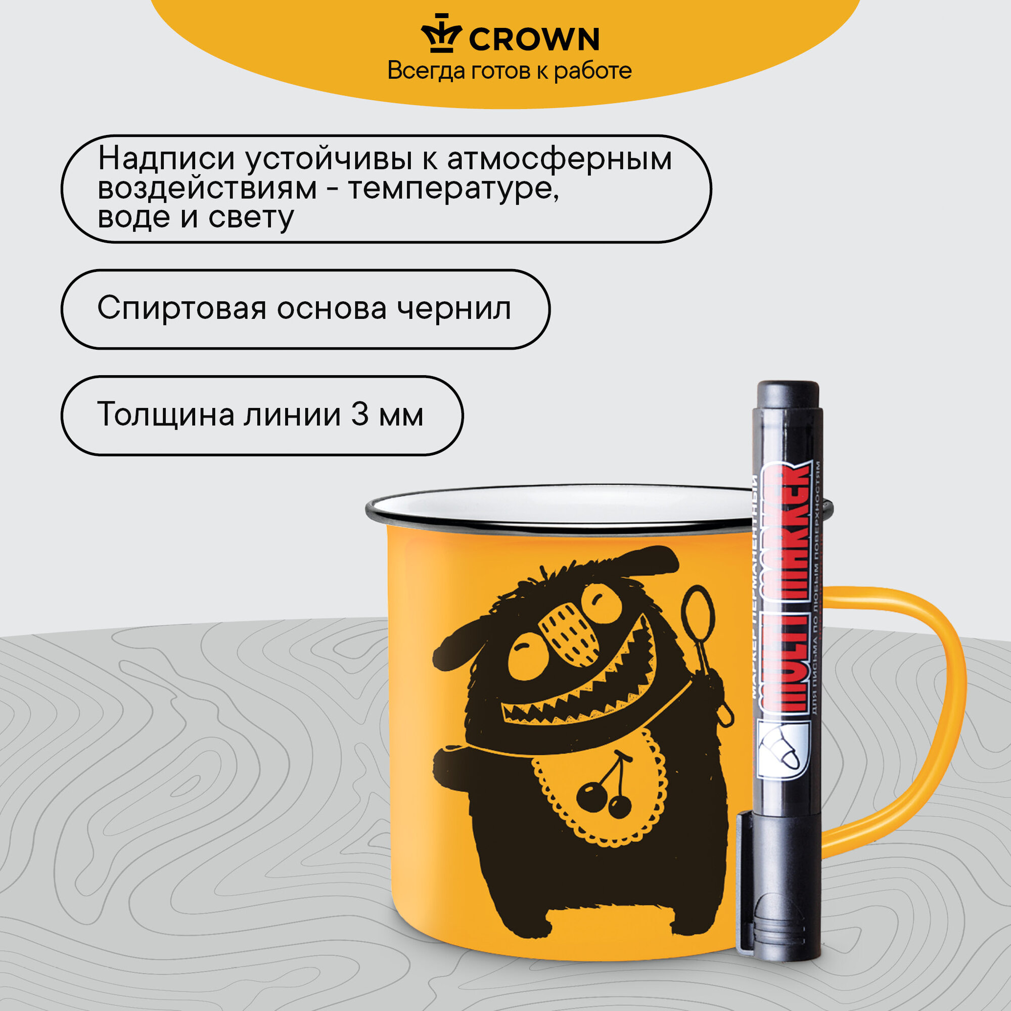 Маркер перманентный Crown "Multi Marker" черный, пулевидный, 3мм, набор 3шт, европодвес информация: