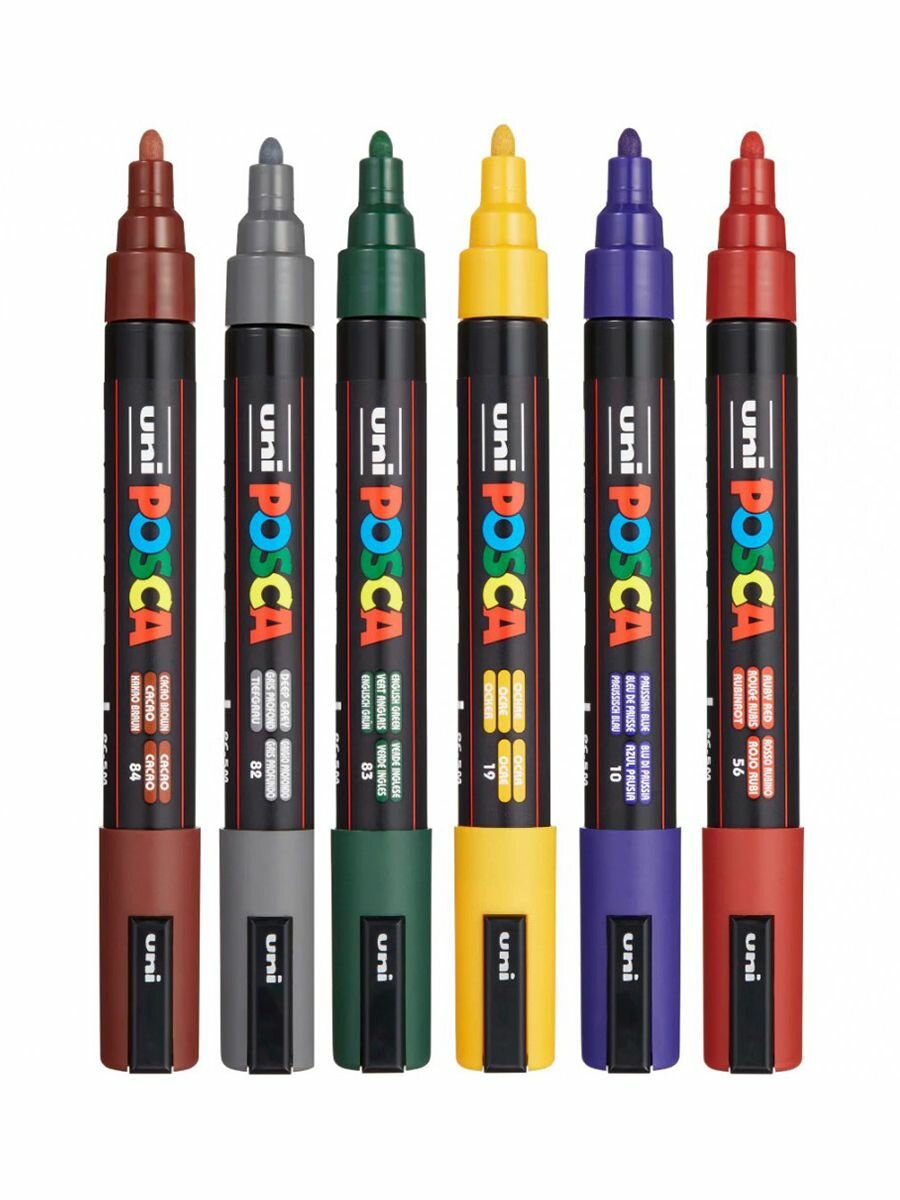 Набор маркеров POSCA PC-5M Насыщенные цвета, 6 цветов, толщина линии 1,8-2,5 мм, для рисования и творчества информация: