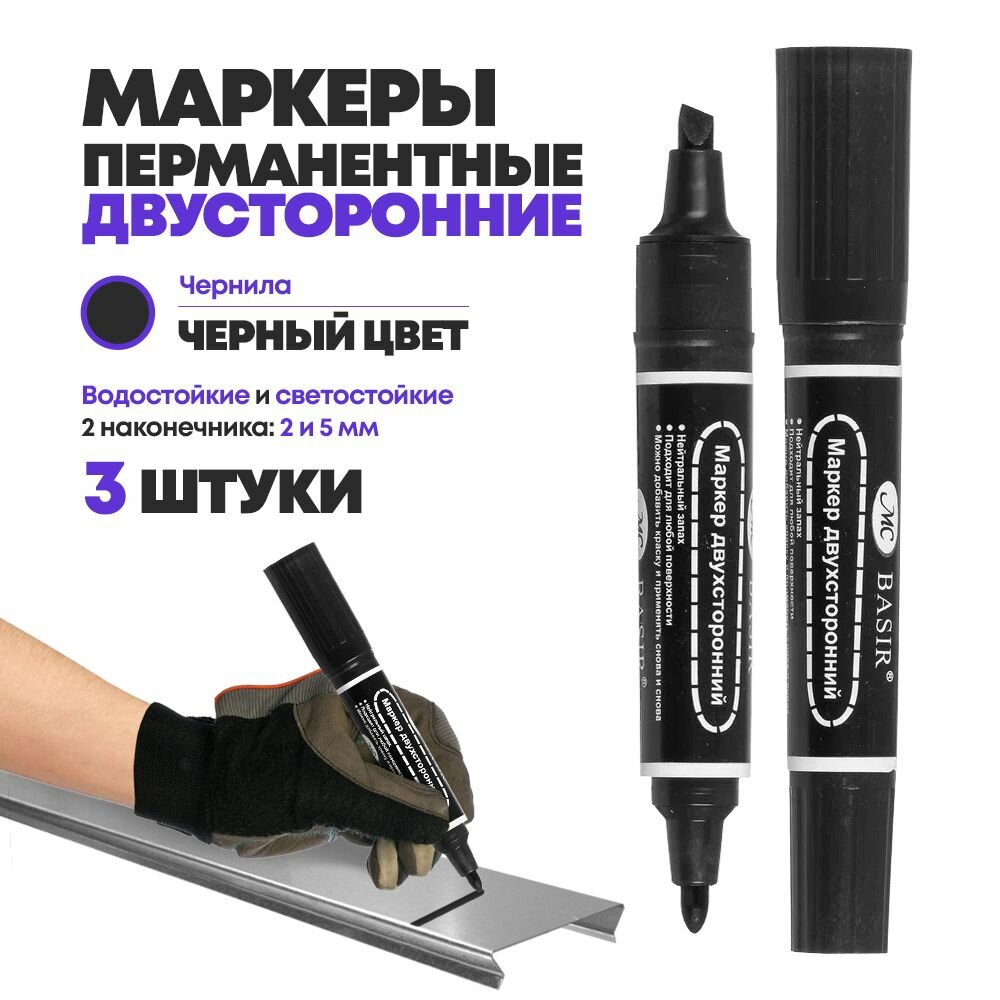 Набор маркеров MC-Basir MC-Basir 301, двусторонние, черные, перманентные, 3шт информация: