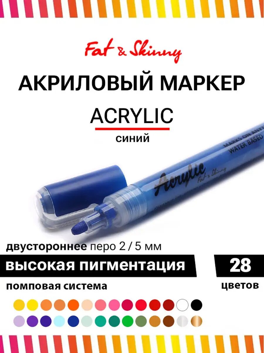 Акриловый маркер Fat&Skinny для рисования с двусторонним пером 2-5 мм синий 188 ₽