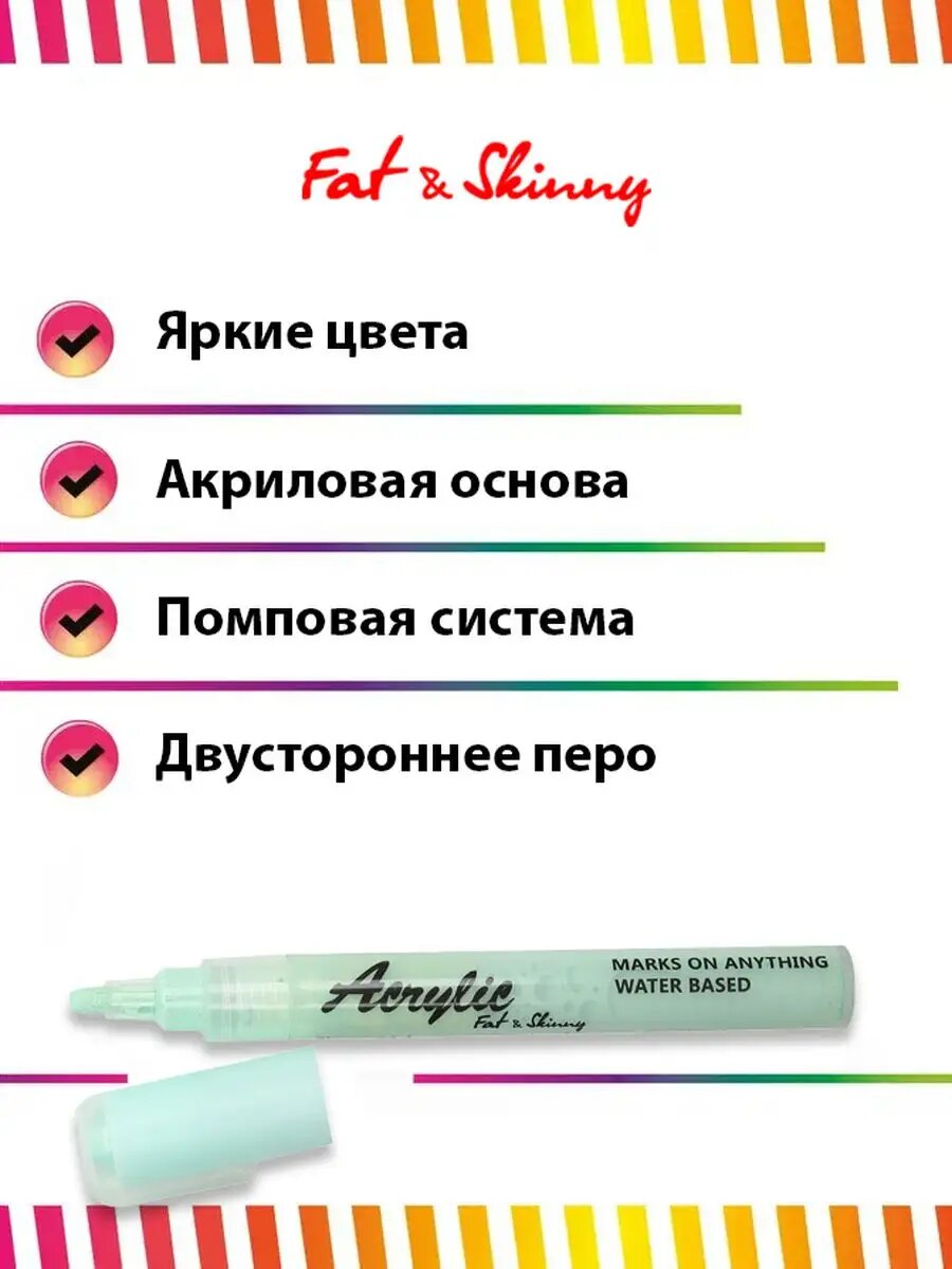 Отзывы на Акриловый маркер Fat&Skinny для рисования 2-5 мм пастельно-зеленый macaron green