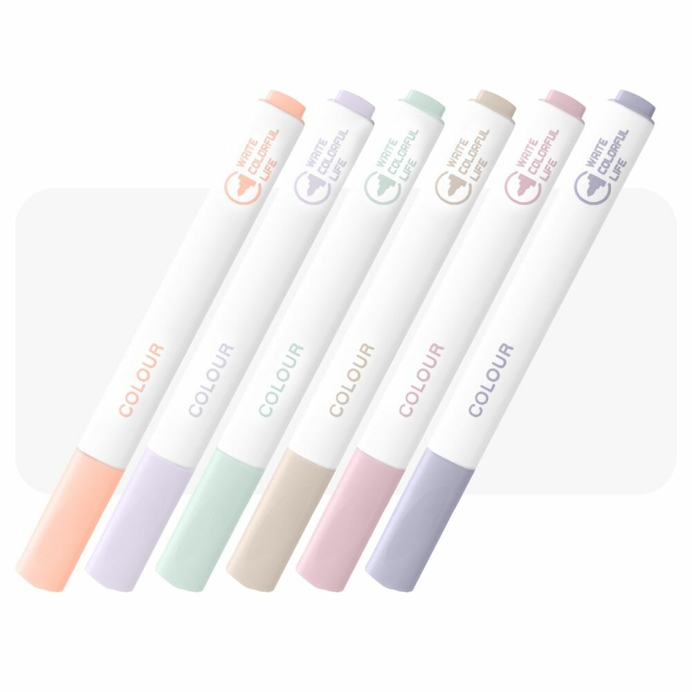 Текстовыделители Zuixua пастельные, 6 цветов, белый треугольный корпус, длина 142 мм, наконечник (толщина линии) 4 мм информация: