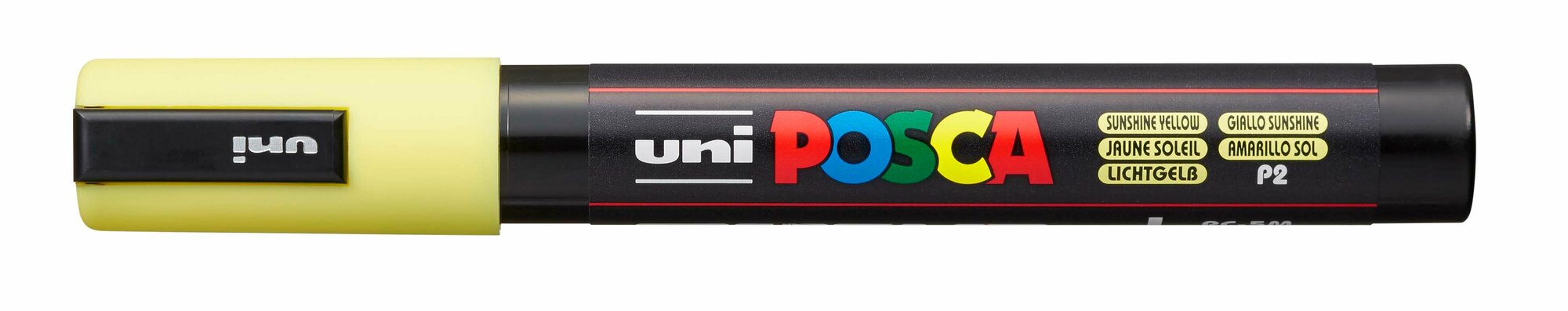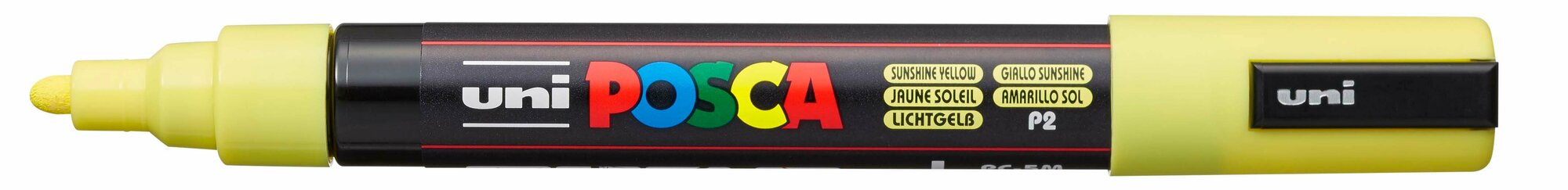 Фломастер UNI POSCA PC-5M, солнечно-жёлтый, 1.8 - 2.5 мм, овальный наконечник информация: