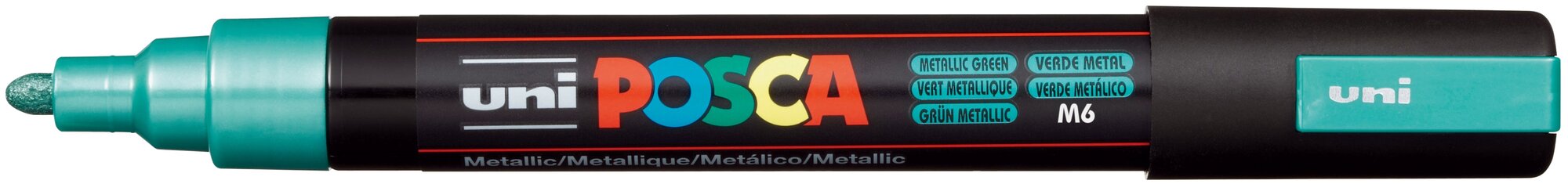Фломастер UNI POSCA PC-5M, зеленый металлик, 1.8 - 2.5 мм, овальный наконечник информация: