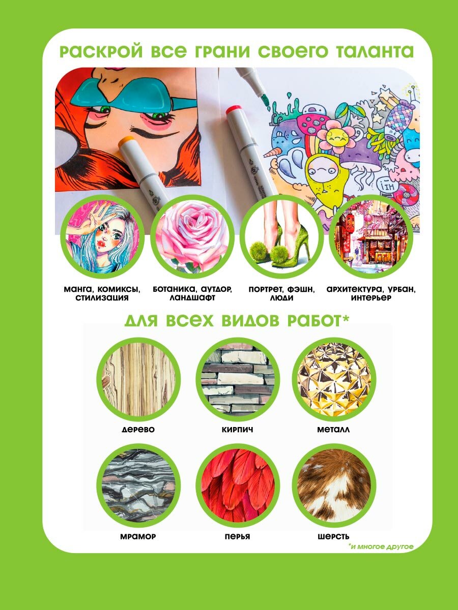 Двусторонний заправляемый маркер SKETCHMARKER на спиртовой основе для скетчинга, цвет: G103 Зеленая бутылка 241 ₽
