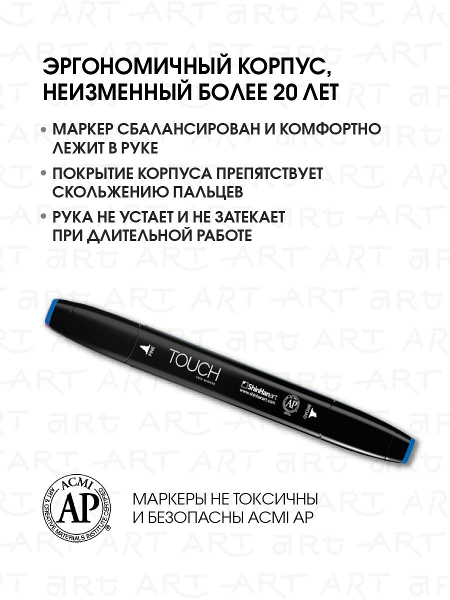 10 цен на Двусторонний заправляемый маркер ShinHan TOUCH TWIN на спиртовой основе для скетчинга, цвет: PB74 Синий бриллиантовый