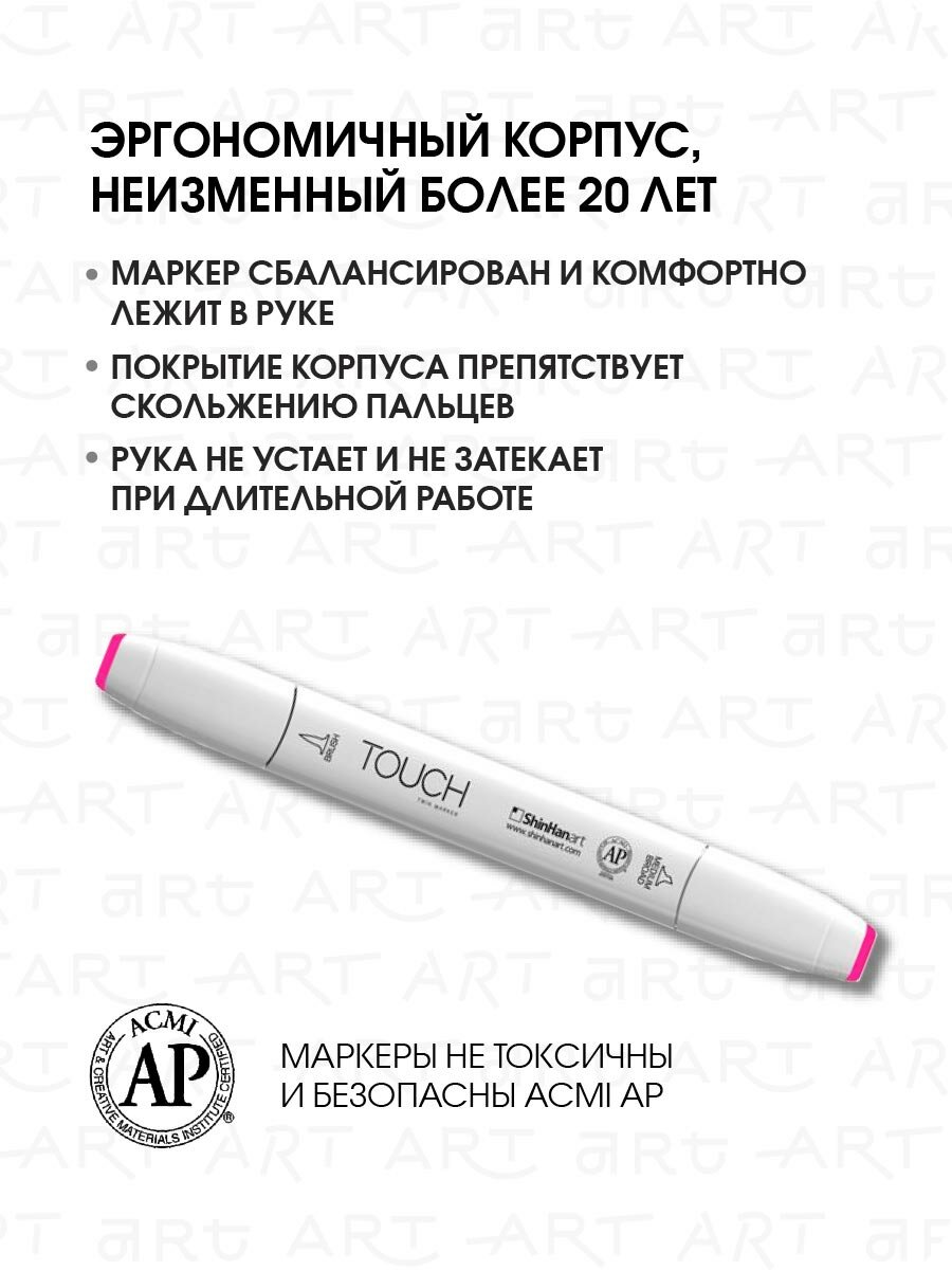 Двусторонний заправляемый маркер ShinHan TOUCH TWIN на спиртовой основе для скетчинга, цвет: RP198 Розовый нежный 525 ₽