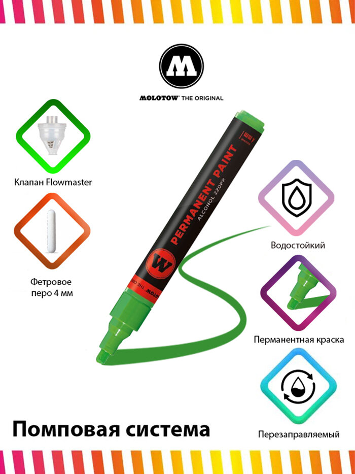 Маркер с краской Molotow Permanent Paint 220PP 220058 зеленый 4 мм универсальный информация: