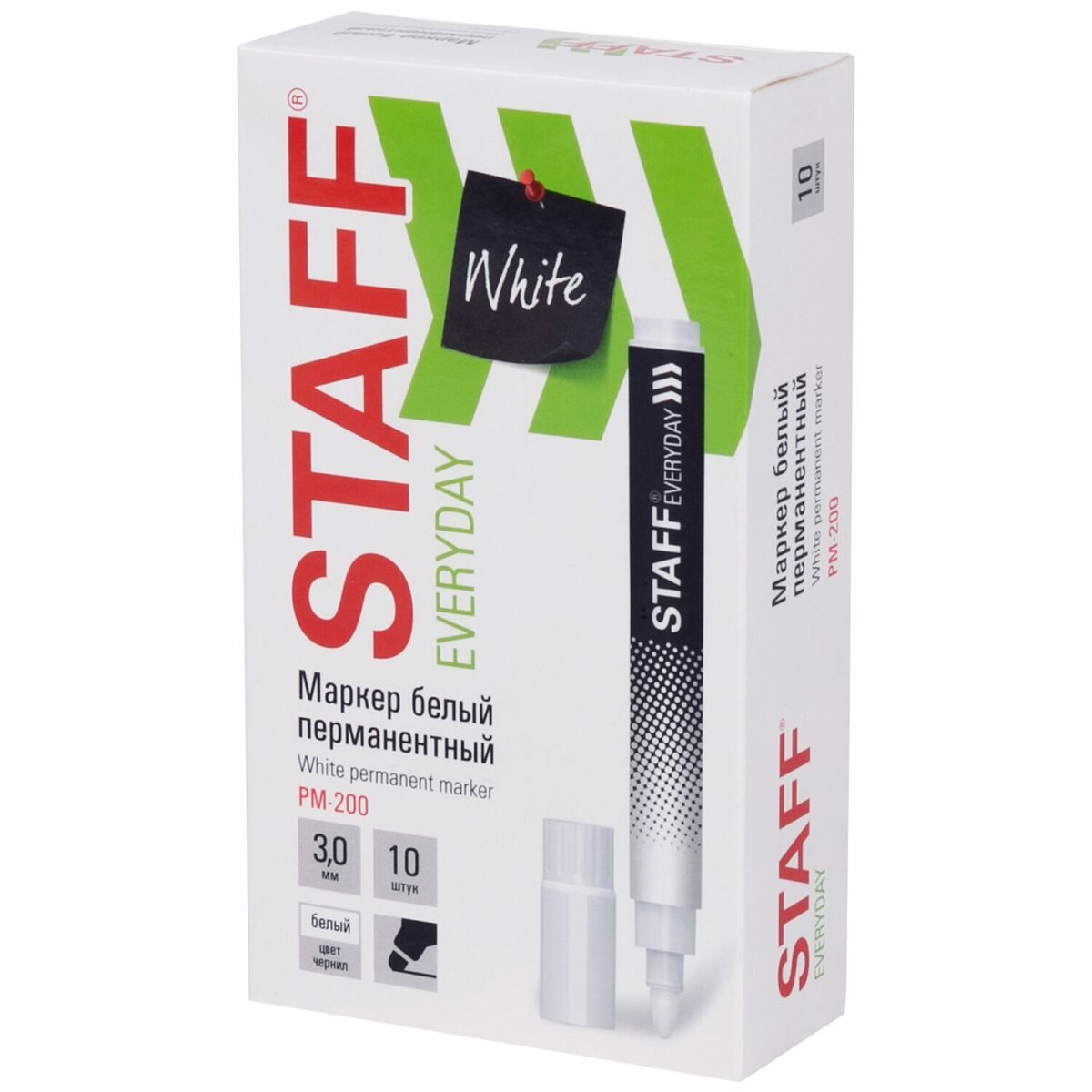 10 цен на Маркер перманентный Staff Everyday PM-200 (3мм, круглый наконечник, белый) (152202), 10шт.