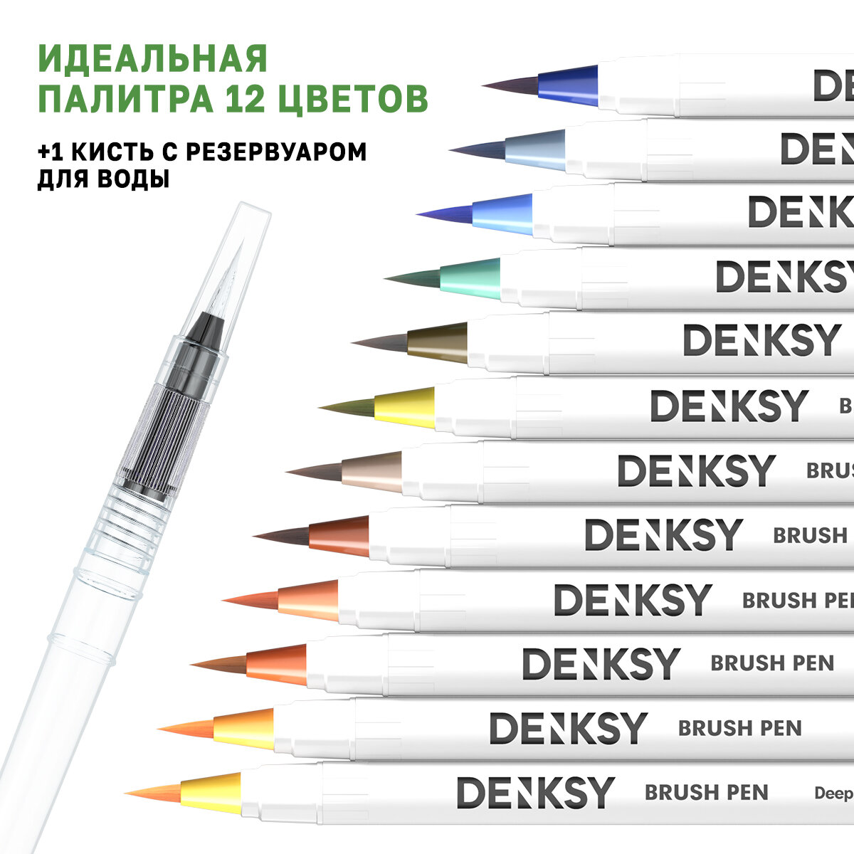 10 цен на Акварельные маркеры DENKSY 12 Nature цветов в белом корпусе и 1 кисть с резервуаром