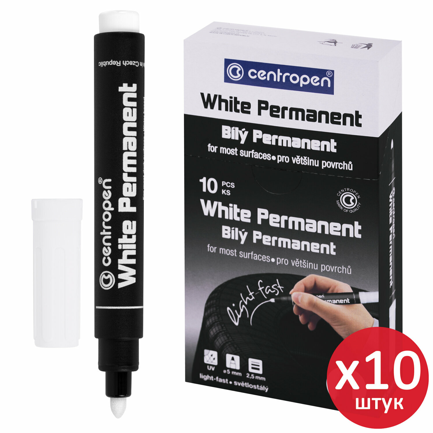 10 цен на Маркеры перманентные (нестираемые) для рисования и письма Белый Centropen 8586, Комплект 10 Штук, 2,5 мм, 880595