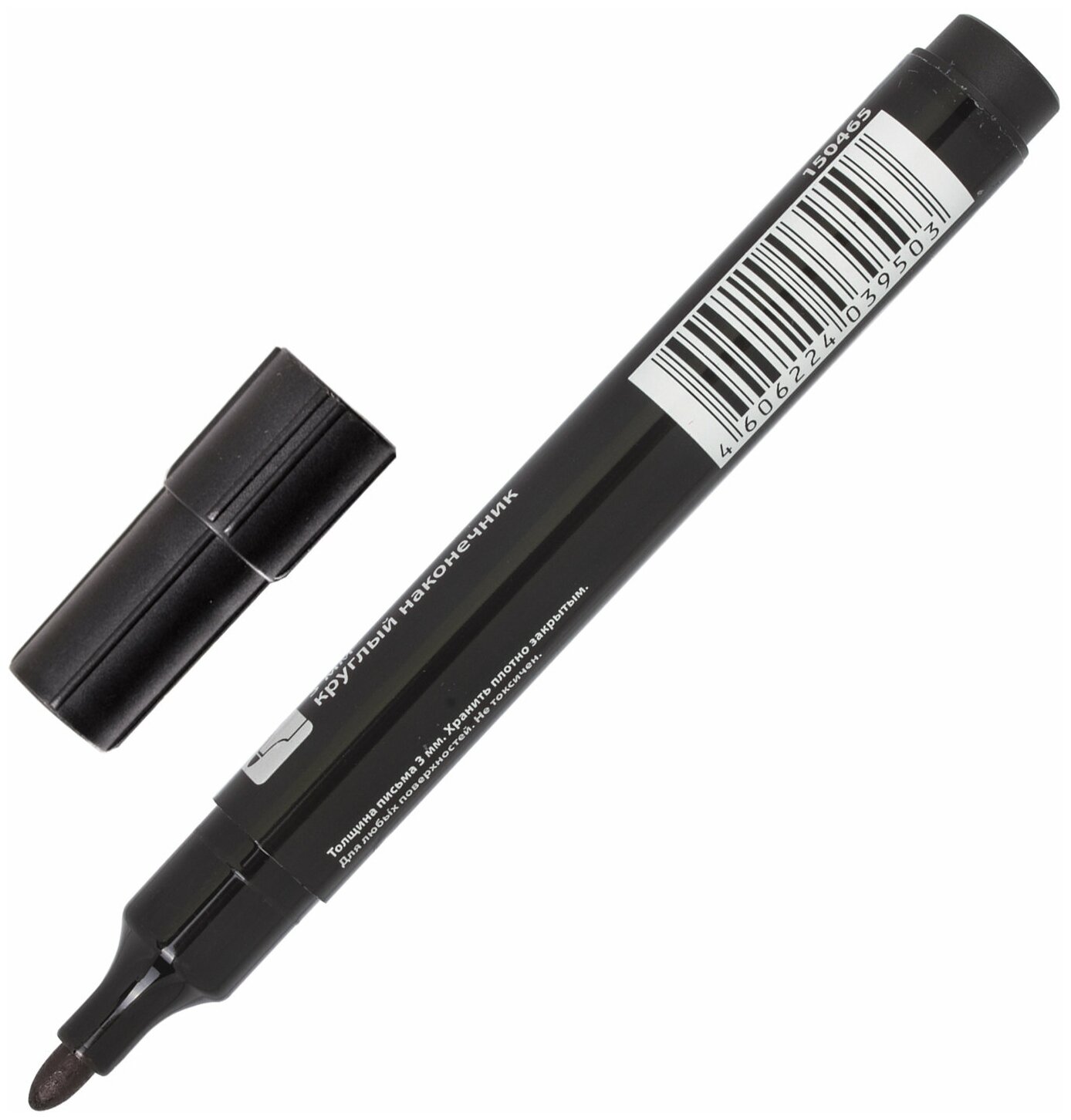 Маркер перманентный Brauberg, нестираемый, "Contract", без клипа, круглый наконечник 3 мм, черный, 1 шт (150465) информация: