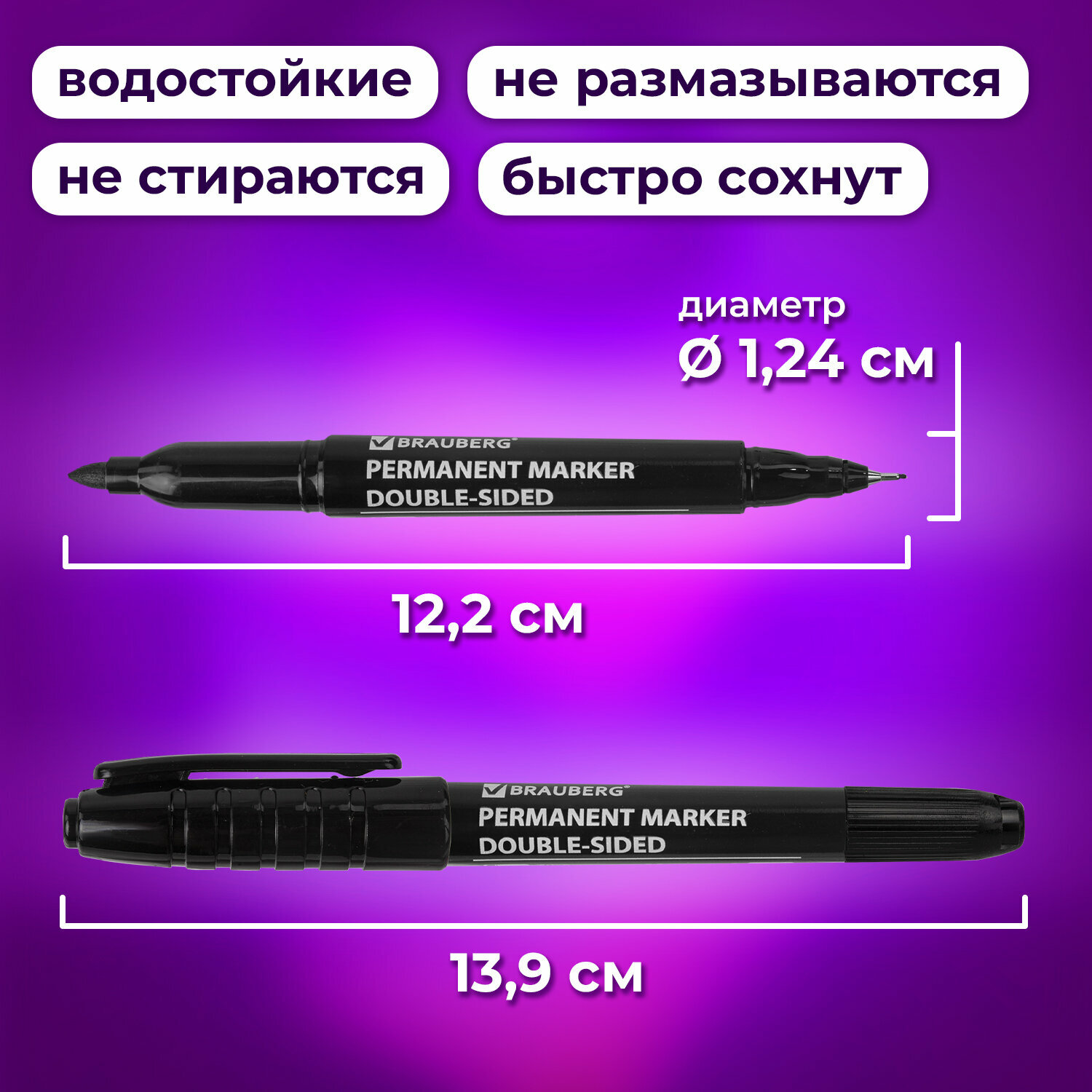 Маркер перманентный черный двусторонний (0,8 мм и 3 мм) комплект 12 штук, BRAUBERG, 880251 информация: