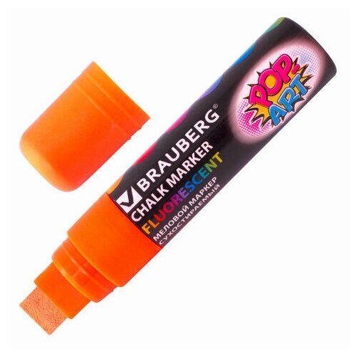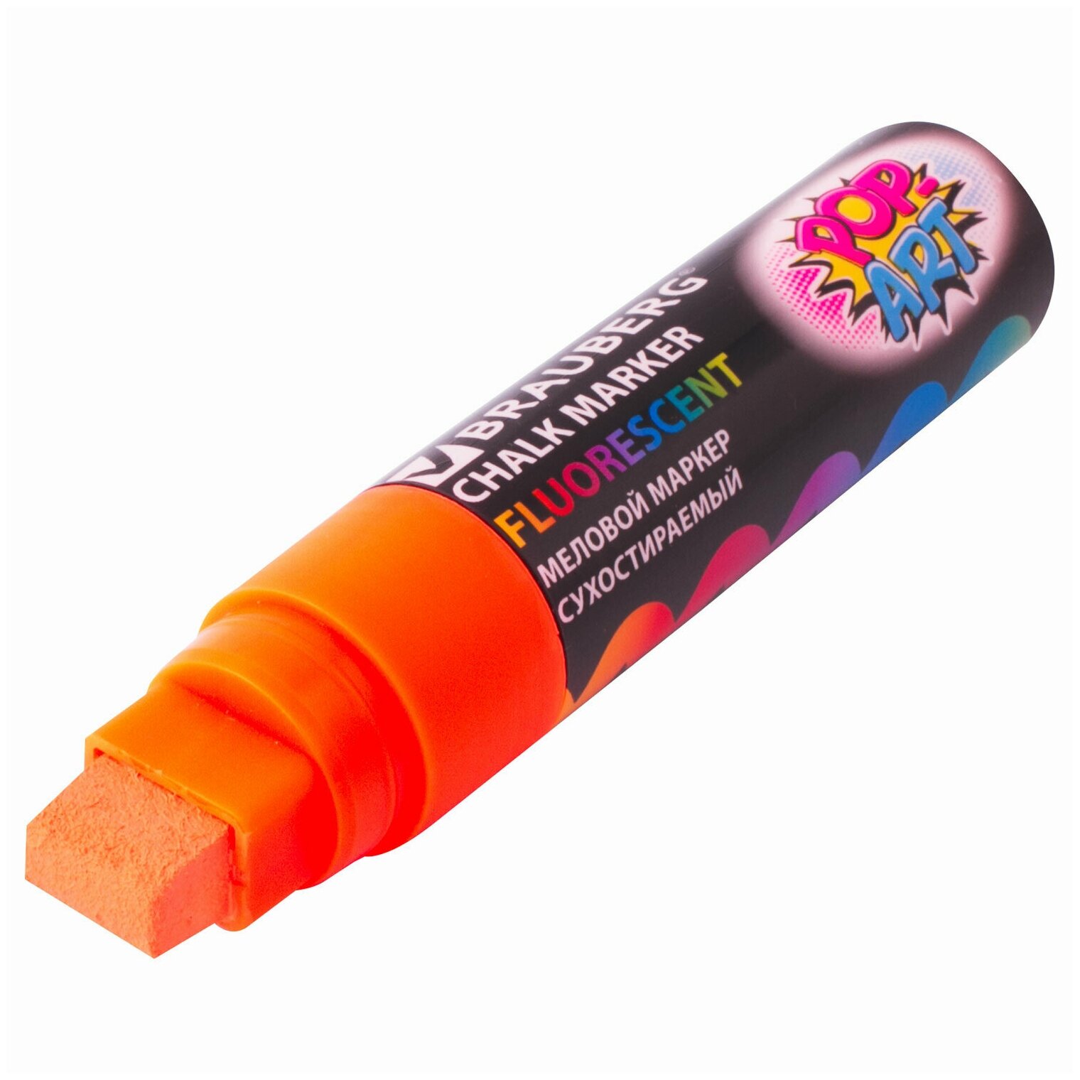 Маркер / фломастер меловой стираемый для доски Pop-art Оранжевый, 15 мм, стираемый, для гладких поверхностей, Brauberg, 151541