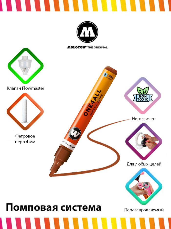 Акриловый маркер Molotow One4all 227HS 227210 (092) коричневый орех 4 мм информация: