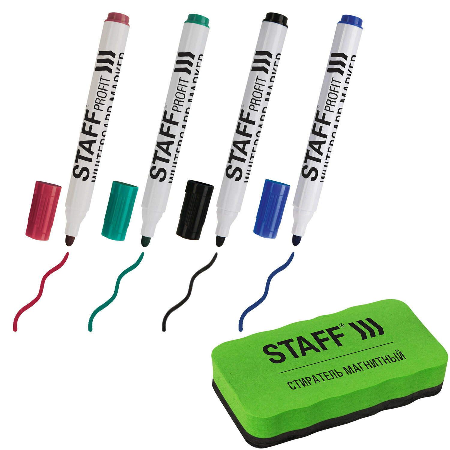 10 цен на Маркеры для магнитной белой доски стираемые 4 цвета, губка стиратель, набор для рисования и письма, Staff Profit, 238847