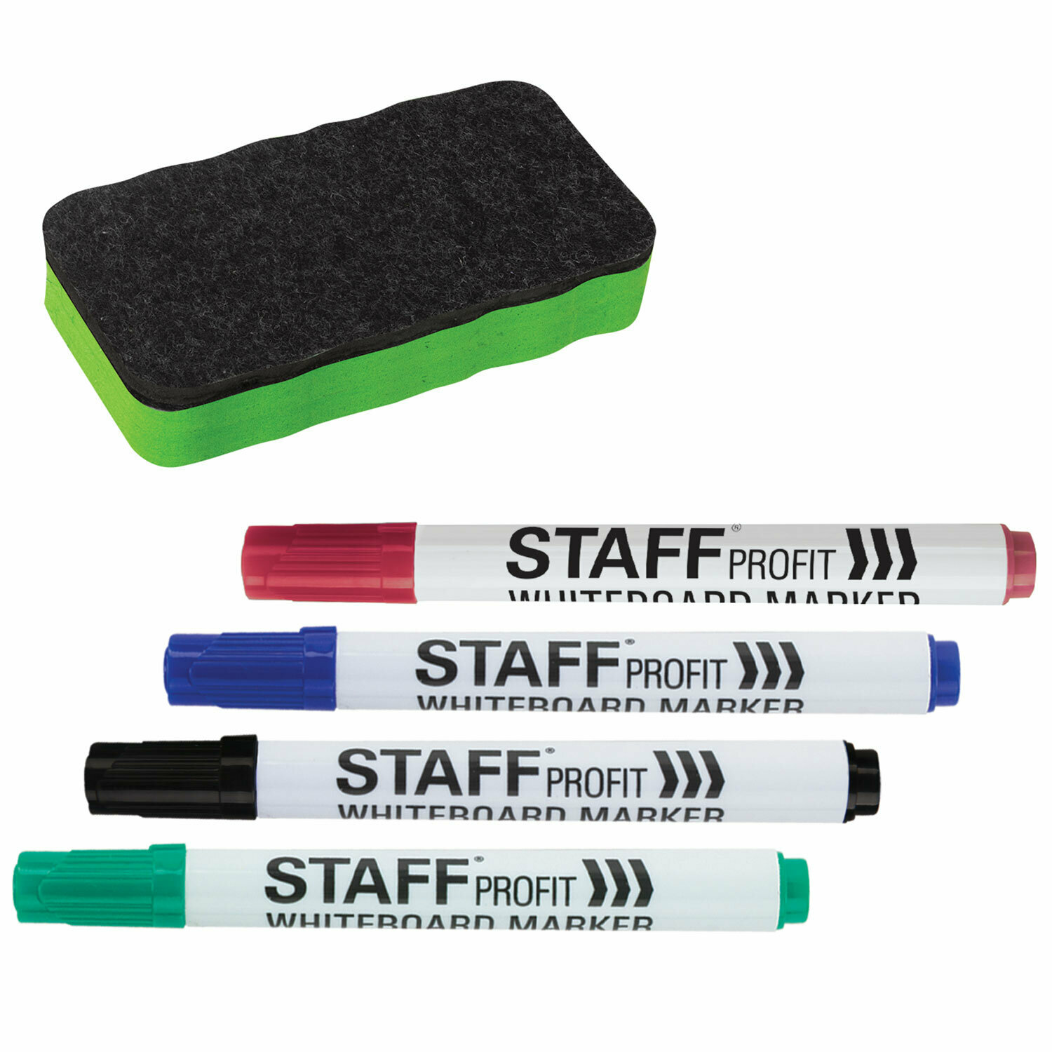 Маркеры для магнитной белой доски стираемые 4 цвета, губка стиратель, набор для рисования и письма, Staff Profit, 238847 информация: