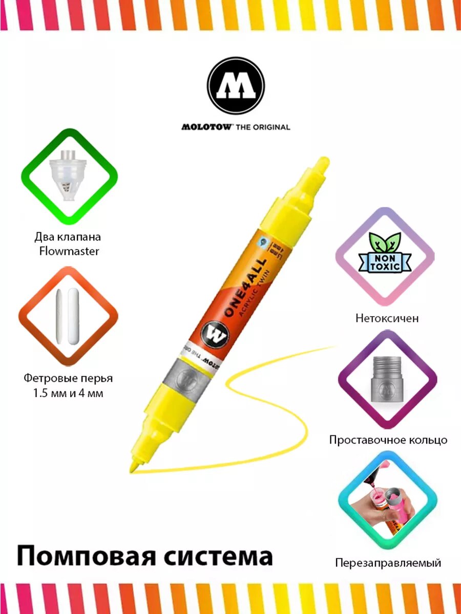 Отзывы на Акриловый двусторонний маркер Molotow One4all 227HS-CO 227429 #220 неон-желтый