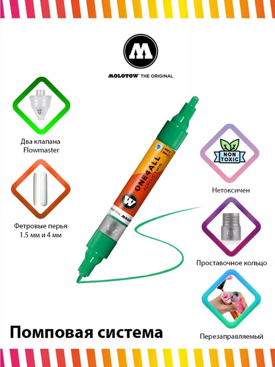 Акриловый двусторонний маркер Molotow One4all 227HS-CO 227442 #236 ядовито-зеленый 1,5 / 4 мм 781 ₽